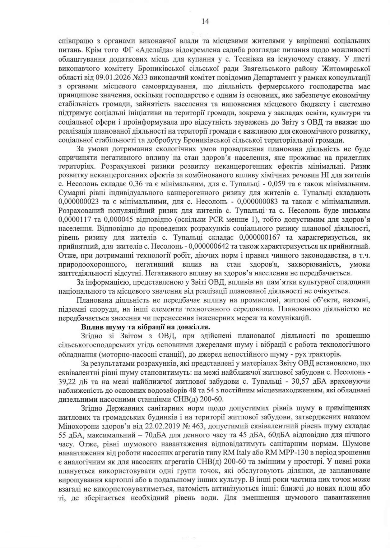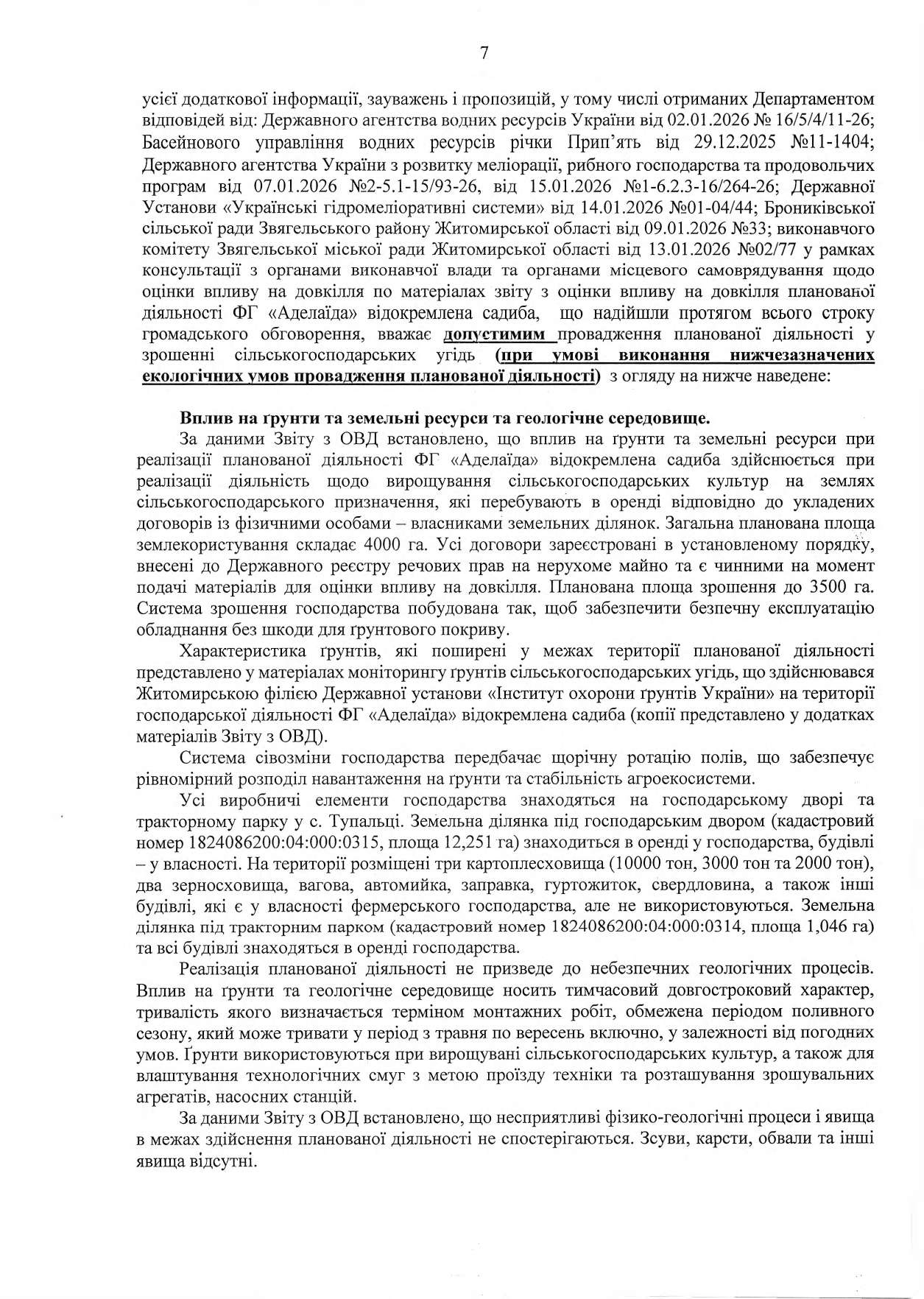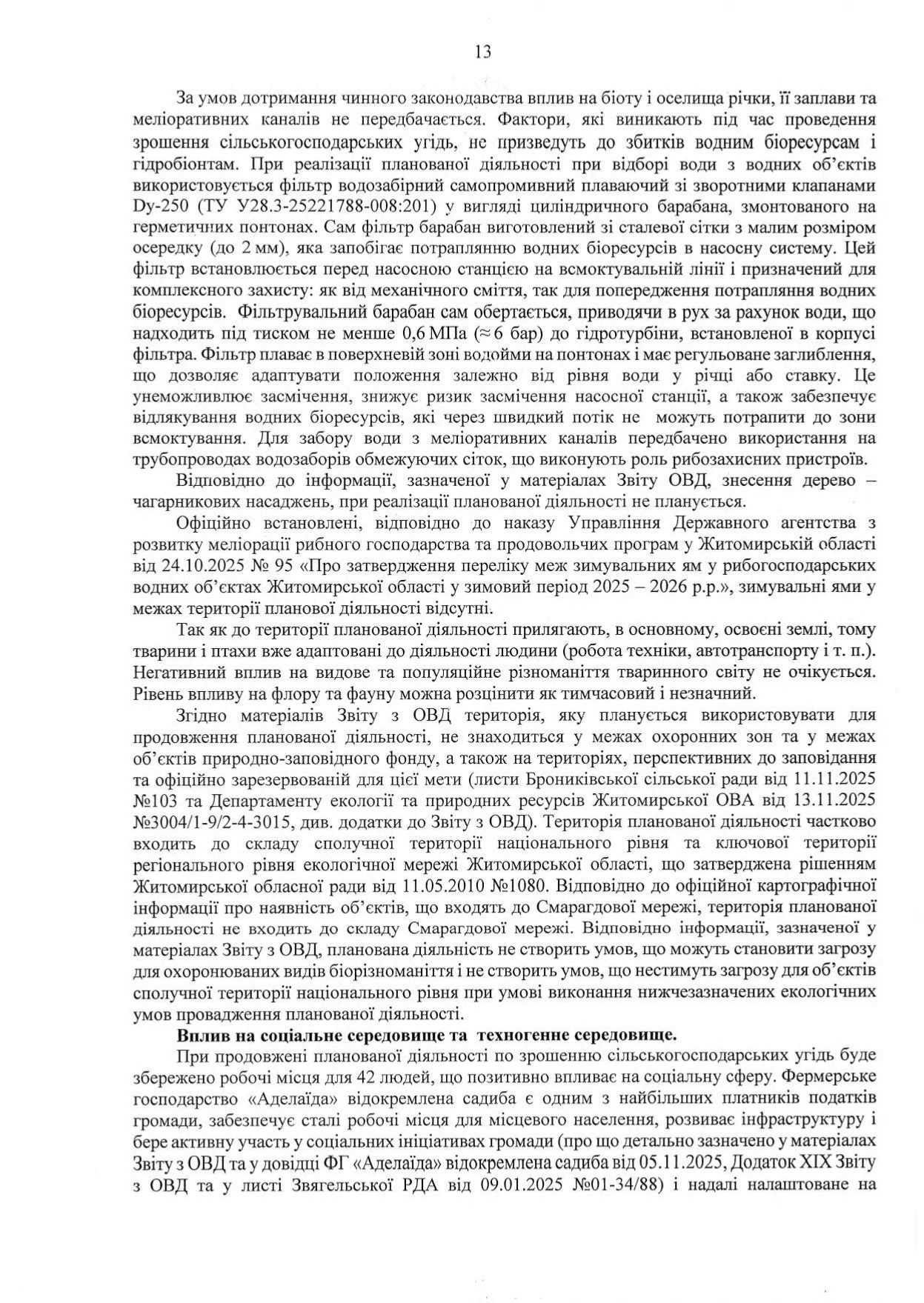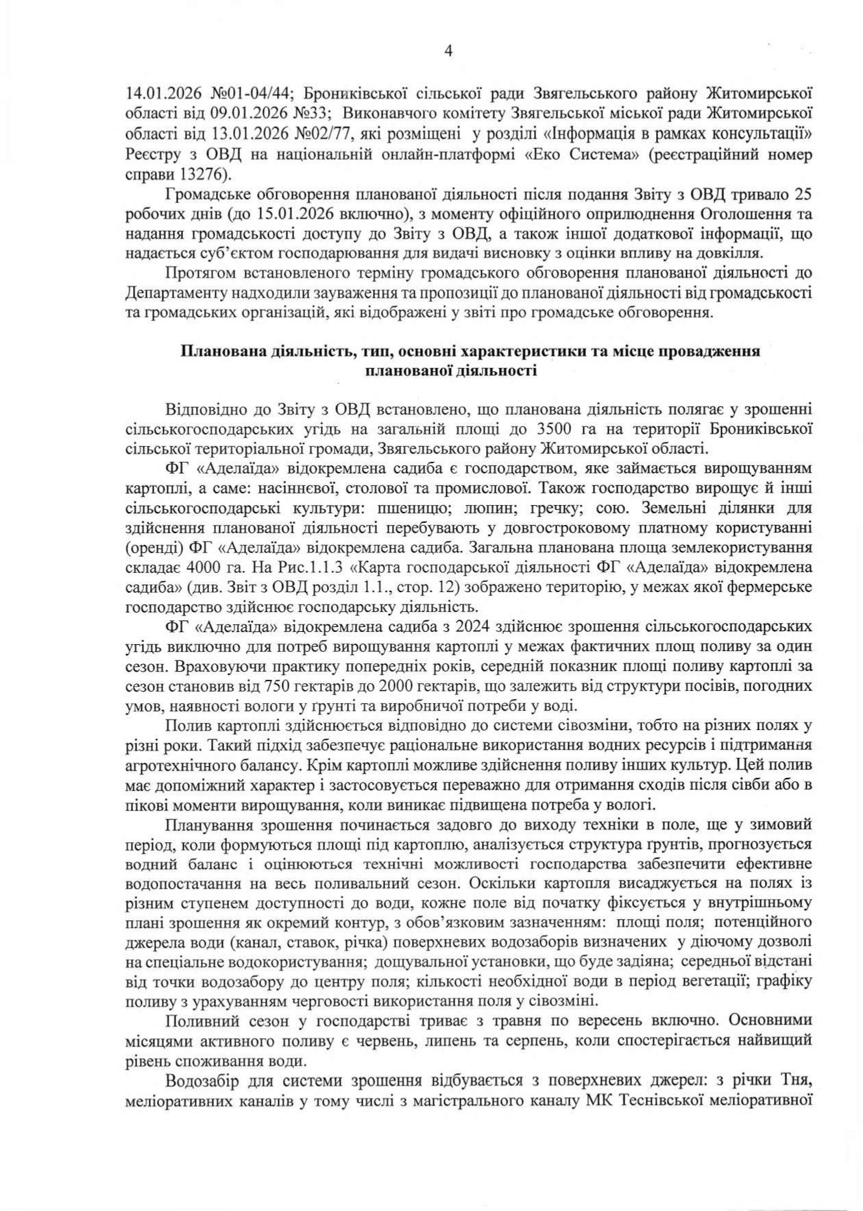 Раді повідомити важливу новину для нашого фермерського господарства: у лютому цього року ФГ «Аделаїда» отримало висновок з оцінки впливу на довкілля для планованої діяльності із здійснення зрошення на території нашої Житомирської філії.