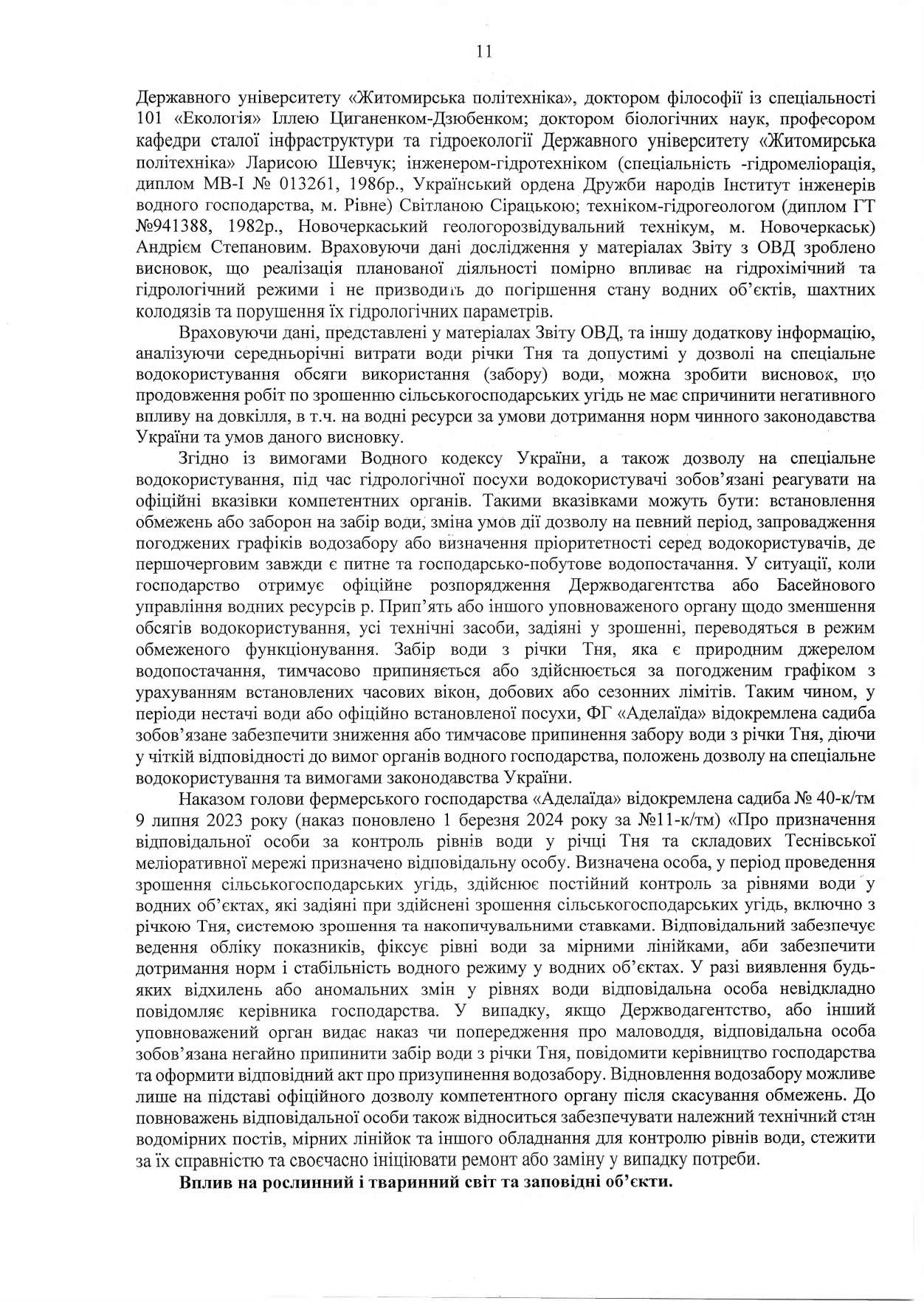 Для нас це не просто офіційний документ. Це результат великої, тривалої та відповідальної роботи, яка вимагала часу, фахового підходу, ретельної підготовки та проходження всіх передбачених законодавством процедур. На шляху до отримання висновку було проведено необхідні дослідження, підготовлено відповідну документацію, опрацьовано технічні, екологічні та організаційні аспекти майбутнього зрошення.